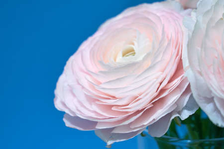 Ranunculus (persian buttercups) on blue background