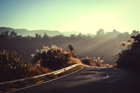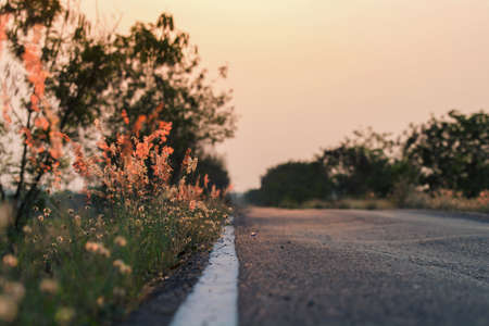 Rural road through the countryside at sunset. Soft focus, shallow DOF.