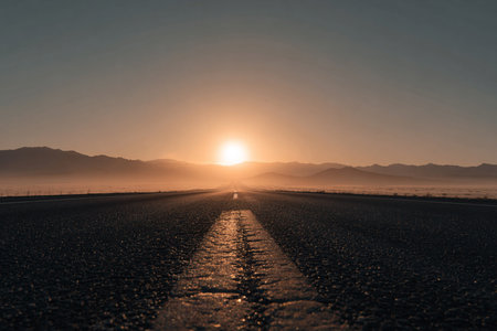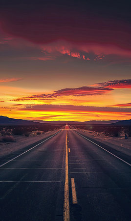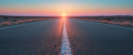 AI Generated. Sunset on the Open Road with Clear Horizon