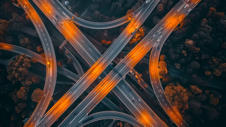 Aerial view of complex highway junction interchange on expressway for search relevance