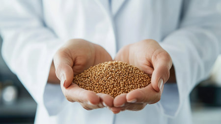 A close-up image of a scientist holding raw seeds in hands, showcasing the importance of seed quality in agricultural research and food production.