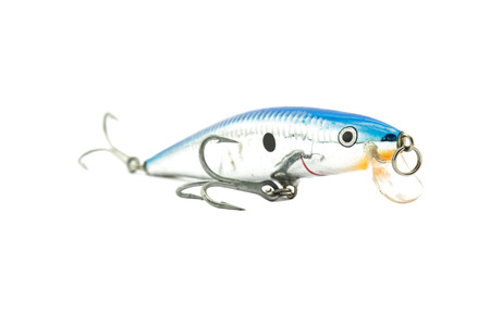 Fishing lure isolated on white. Wobbler in three color. Silver and black colors.