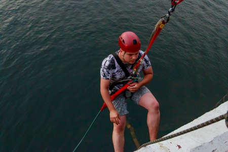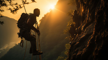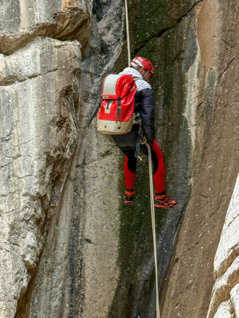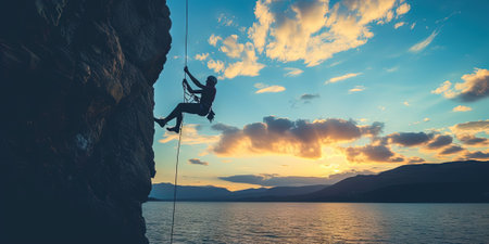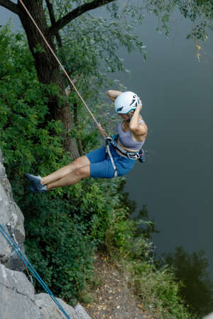 Abseiling Climbing Outdoor scenic rope rappeling rock adventure. High quality photo