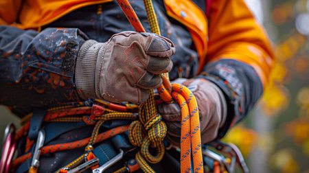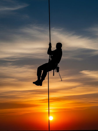 Vertical journey, A skilled climber scales rocky heights, tethered by a secure climbing rope.