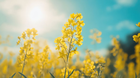 Macro shot of canola blooms in vibrant yellow hue by generative AI