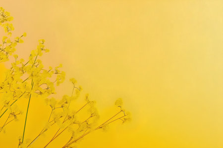 Summer or spring natural floral background with yellow blooming field, blurred image, selective focus
