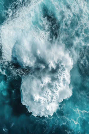 Dynamic close-up of swirling ocean waves and foam symbolizing power and natural beauty.
