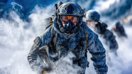 Soldiers carry out winter training exercises in a snowy landscape, overcoming visibility challenges and utilizing tactical gear. The intense environment tests their skills and endurance.