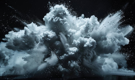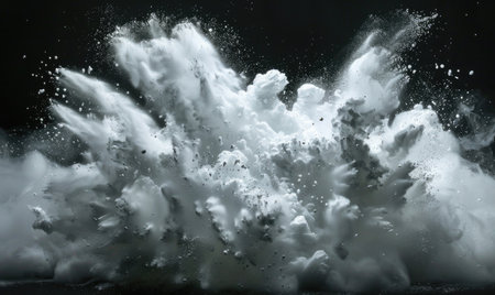 Powder explosion creating a white cloud on black background
