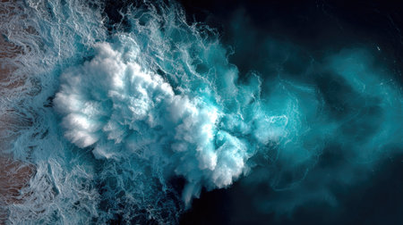 Aerial view of ocean waves crashing against the shore, showcasing dynamic patterns of foam and liquid. Perfect for nature and water-themed projects.