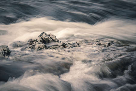 Water flowing over rocks in a stream. Motion blur. Abstract background.