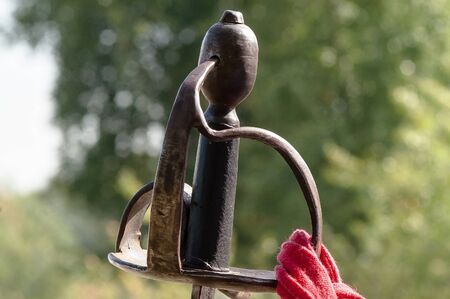 Medieval sword handle, detail of an old medieval sword, ancient weapon detail