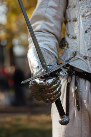 Fencer s glove holding weapon symbolizes readiness in olympic sport, showcasing preparedness