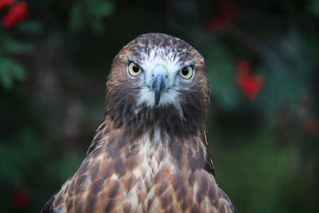 Close-up portrait of Red-Tailed Hawk staring at the camera
