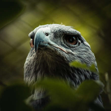 Portrait of a bird of prey in the aviary of the zoo
