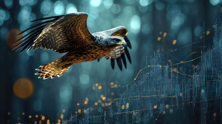 A Stylized falcon soaring over financial chart, symbolizing strategic investment vision
