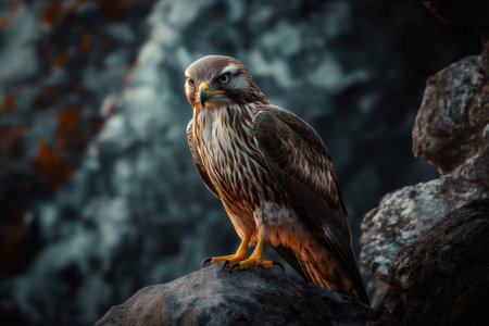 Majestic hawk perched on a rock in its natural habitat, radiating power and vigilance while surveying its surroundings with keen eyes