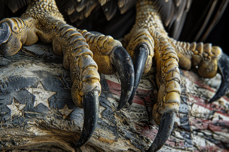 Majestic Bald Eagles Talons Gripping American Flag-Adorned Driftwood with Dramatic Lighting