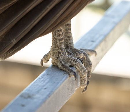 Animal bird legs. Closeup photo of claw. Rooster or chicken leg
