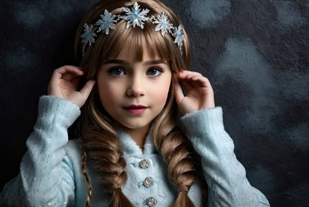 expressing smug. arrogant princess in tiara. proud kid with curly hair
