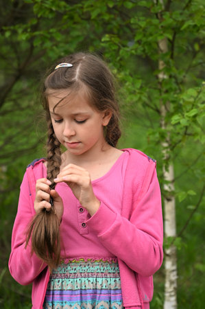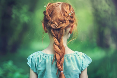 Young girl with a long braid against a verdant natural backdrop