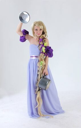 Blond princess with pan on studio