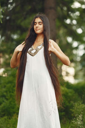 Indian girl in a summer forest