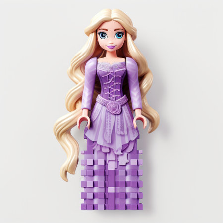lego rapunzel, the princess of rapunzel, showcases a multilayered surface design with cartoonish character features. with blink-and-you-miss-it details and authentic expressions, this lego figure captures the essence of the beloved character. the puzzle-like pieces and symmetrical construction create monumental ensembles that will delight fans of all ages. ai generated