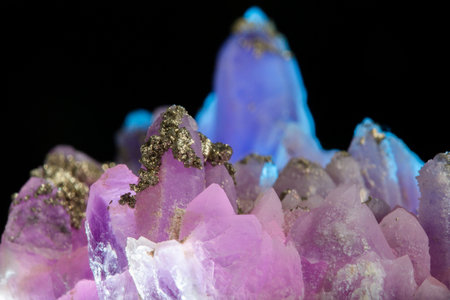 Crystal Stone macro mineral surface, purple rough amethyst quartz crystals
