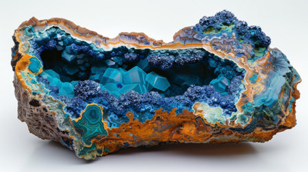 Beautiful Mineral Formation Showcasing Intricate Turquoise and Blue Crystals in a Naturally Occurring Geode From an Unknown Location. Generative AI