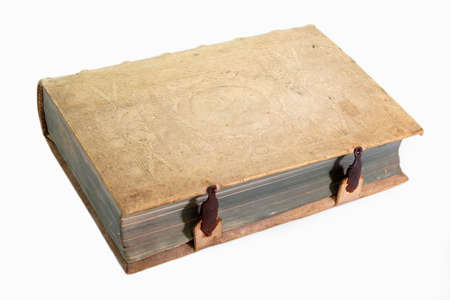 Very old closed book. Side view. White background.