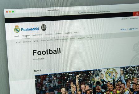 Milan, Italy - August 10, 2017: Real Madrid website homepage. Real Madrid logo visible.
