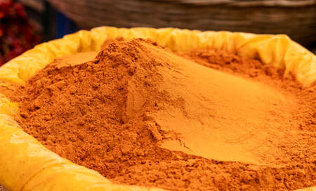 Close up of organic turmeric (curcuma) spice sold at local farmers market