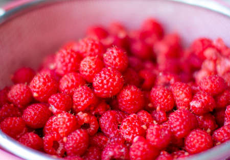 Beautiful, ripe, red raspberries close-up. Fresh berries.