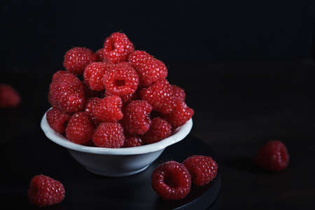 Fresh and sweet raspberry in a dark background. Selective focus.