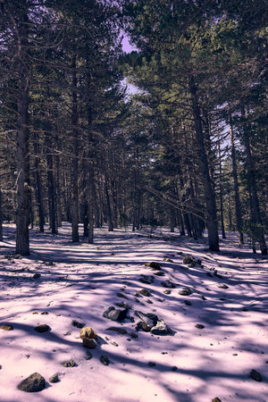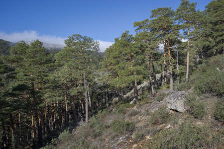 Forest of Scots pine tree, Pinus sylvestris. Photo taken in Guadarrama Mountains National Park, province of Madrid, Spain