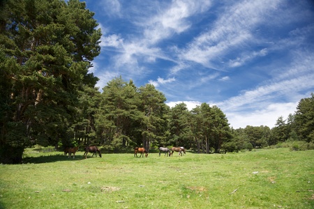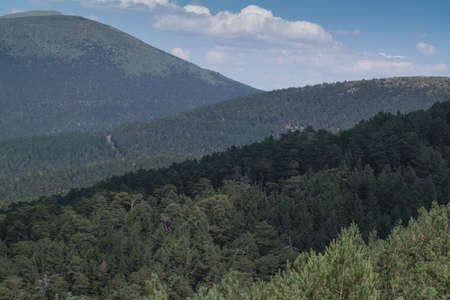 Valsain forests on the northern slope of the Sierra de Guadarrama crowned by the ports of Navacerrada and FuenfrÃa, Segovia, Madrid. Spain