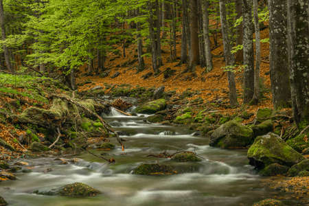 Photograph of the beech forest of Ciñera, Leon (Spain) known as Faedo, declared the best preserved forest in Spain in 2007. You can see the river that crosses the forest