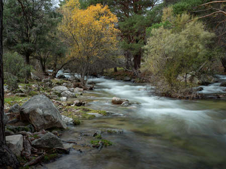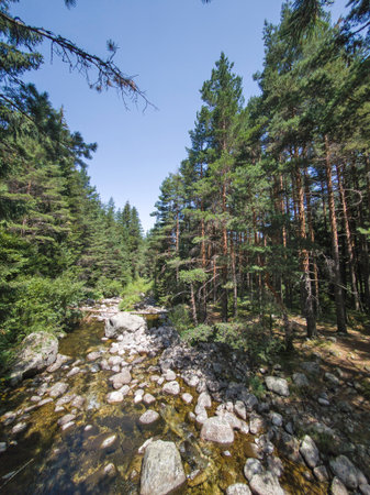 A scenic river through the Angostura Valley in Sierra de Guadarrama National Park, Madrid, Spain