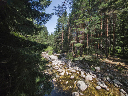 Summer view of Rila Mountain near Beli Iskar River, Sofia Region, Bulgaria