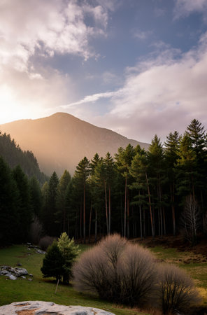 Sunrise in the forests of the Sierra of Guadarrama. Madrid. spain