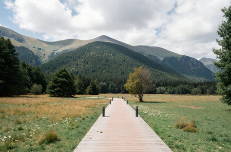 Summer landscape with forest road in La Cerdanya, Pyrenees mountain, Catalonia, Spain.