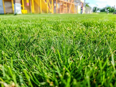 Field of fresh green grass texture as a background, top close up view, Soccer green grass as a banner background