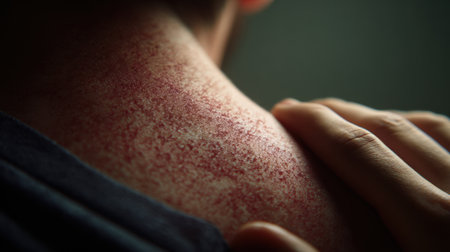 Skin condition close up texture redness inflammation health dermatology human body shoulder medical