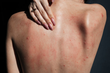 Allergic rash on the skin. Woman with dermatology problem on back skin