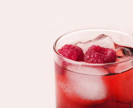 Raspberry ice cold refreshing cocktail with berries. Flat lay, Front view