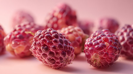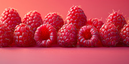 A closeup view of fresh raspberries showcasing their vibrant color and texture against a soft pink background, perfect for healthy eating and culinary inspiration.
