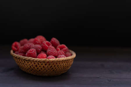 Fresh and sweet raspberry in a dark background. Selective focus.