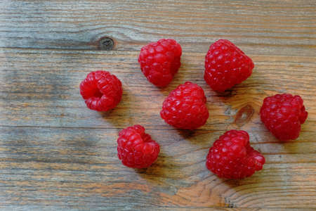 Ripe raspberries on a wooden background