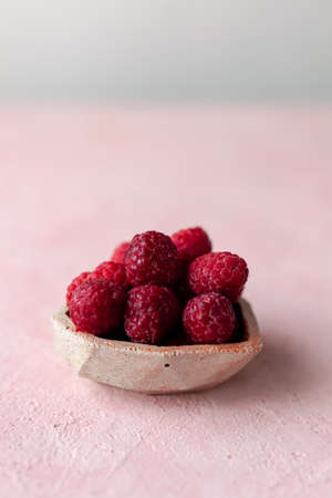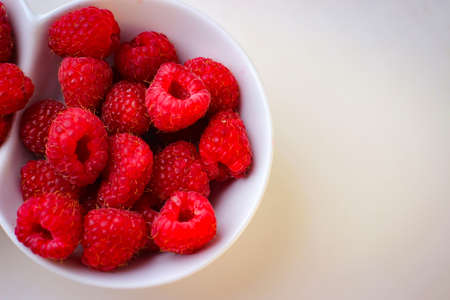 Healthy diet vitamin snack wiht red ripe raspberries